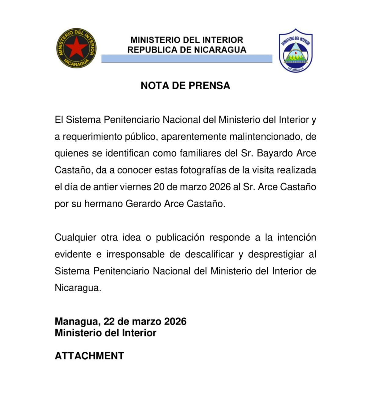 El comunicado del Ministerio del Interior deja claro que no hay espacio para versiones distintas. Al descalificar directamente a los familiares de Arce, el régimen no solo responde, también busca disciplinar el discurso: no se permite cuestionar, no se permite contrastar y no se permite construir una versión paralela.