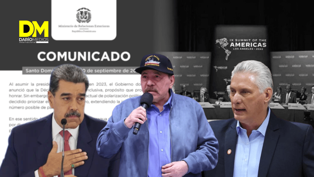 La dictadura de Daniel Ortega y Rosario Murillo enfrenta un nuevo revés en el plano internacional. La Cancillería de República Dominicana anunció oficialmente que Nicaragua, junto a Cuba y Venezuela, no ha sido invitada a la décima Cumbre de las Américas, que se celebrará del 1 al 5 de diciembre en Punta Cana.