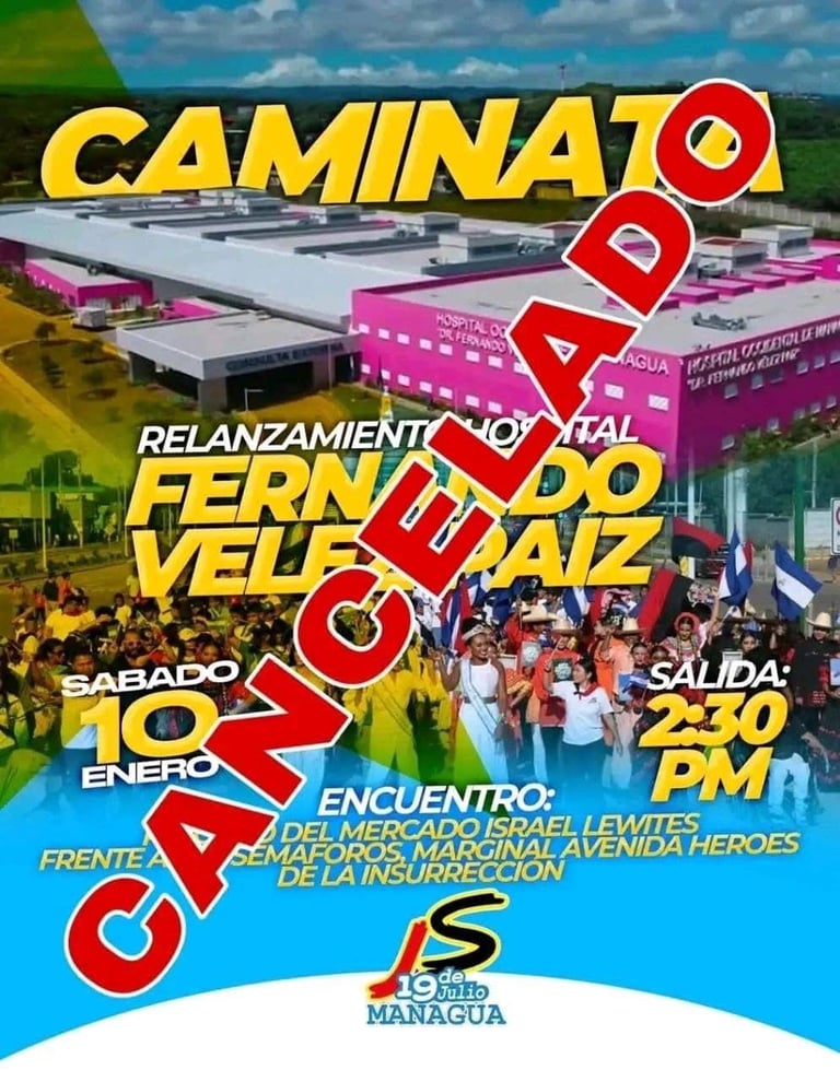 Anuncio oficial de la cancelación de la caminata central por los 19 años de gobierno en Managua.